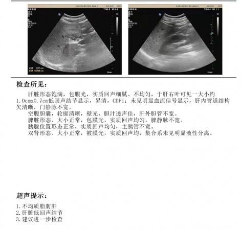 三个月每天快走半个小时,复查彩超脂肪肝没了低回声区也消失了,证实是肝岛