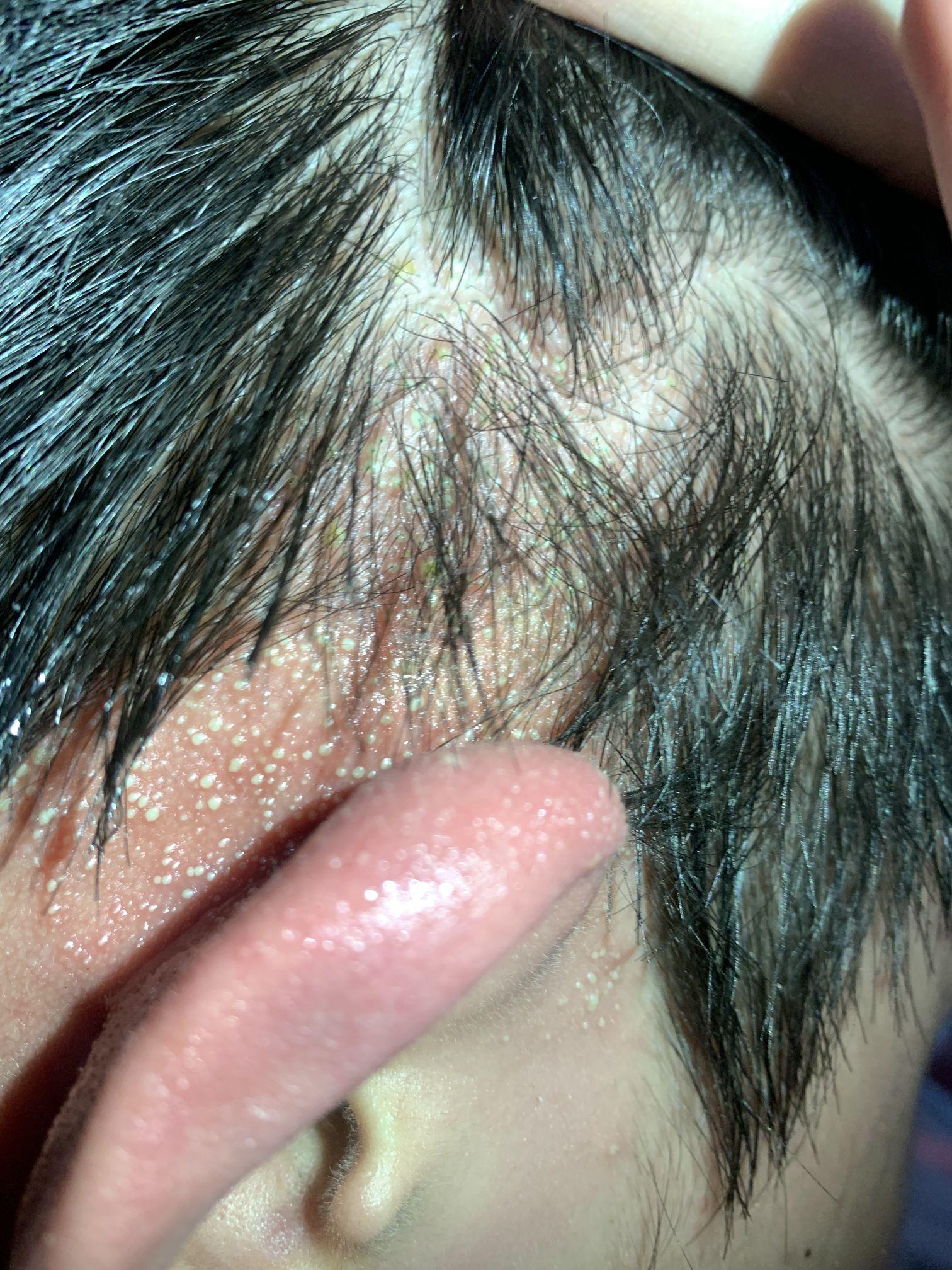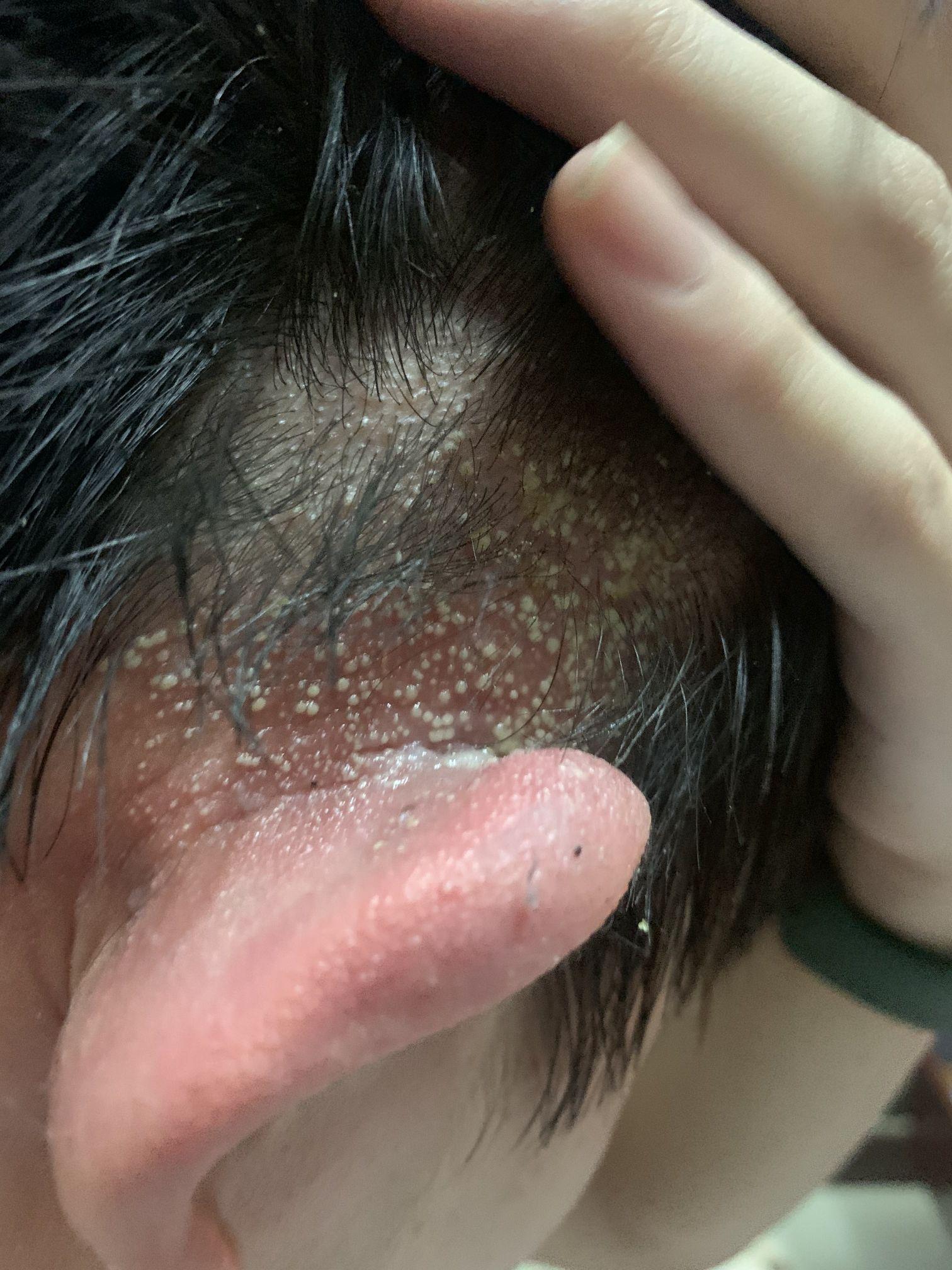 右耳朵和头皮密密麻麻的像化脓一样的泡,诊断为何?