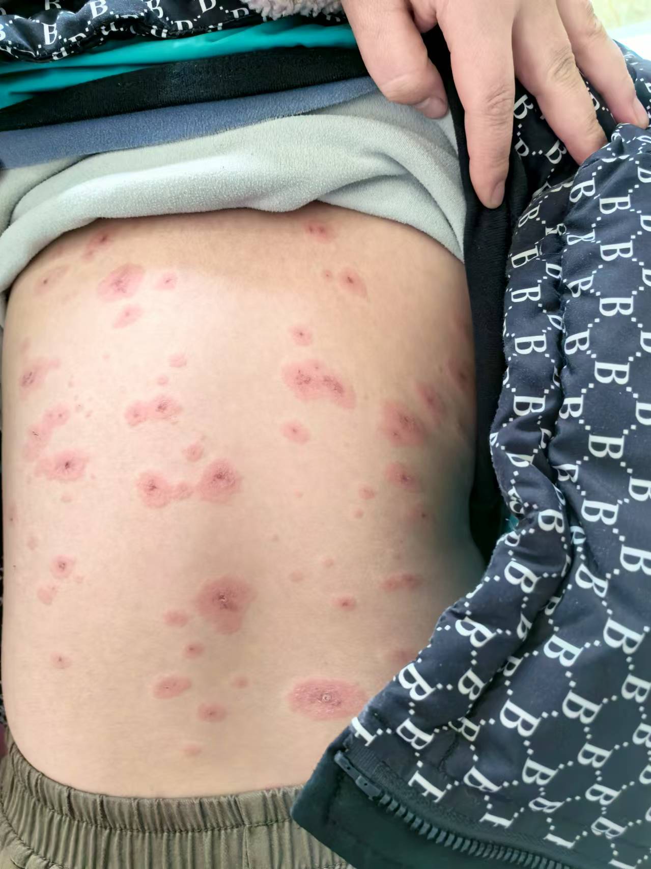 8岁,前胸腹部,以及背部,多发!瘙痒!四肢无皮疹!请各位诊断一下!