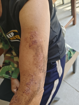 主诉:左上肢针刺样疼痛2天伴出疱疹1天。